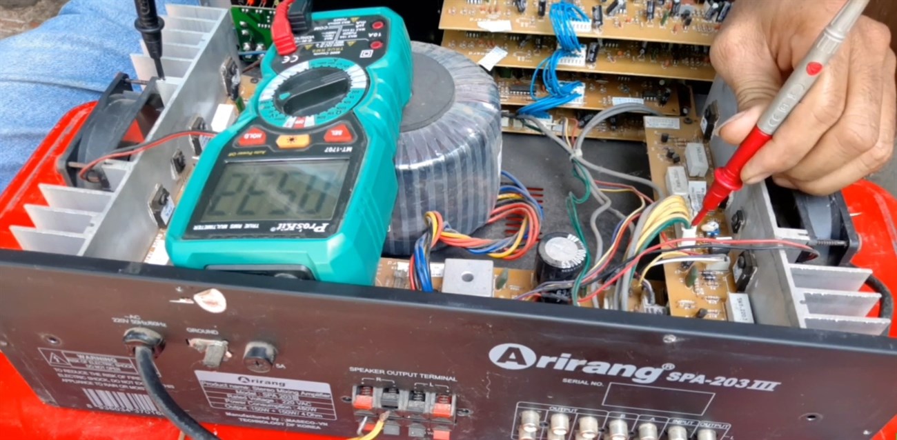 - Ampli bị nghẹt tiếng một bên do mạch xử lý thì bạn cần dùng đồng hồ vạn năng để đo các IC trên mạch âm thanh. Nếu thấy IC nào bị chết thì chỉ cần thay thế bằng IC cùng loại. Nếu như nó chỉ bị lỏng thì sử dụng que hàn để cố định các con IC này lại là được.